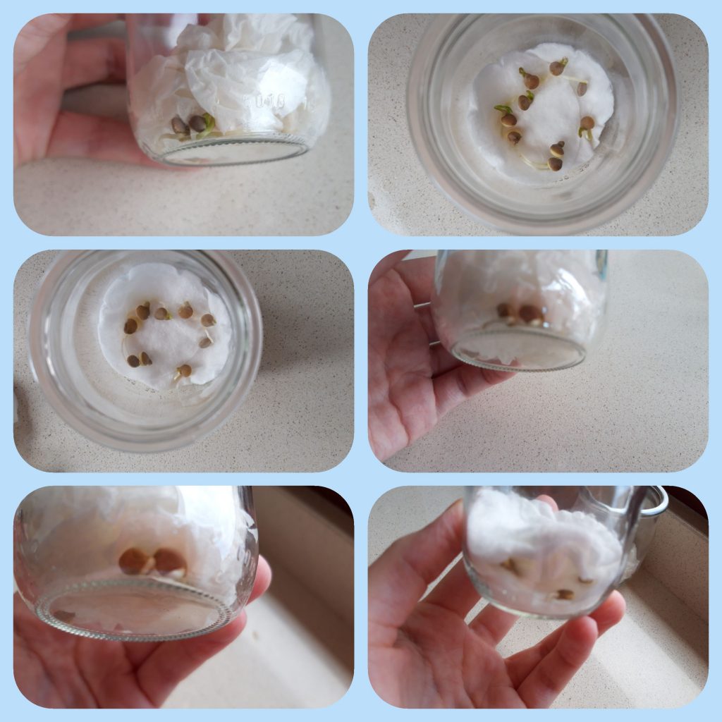 Boas familias, como non hai mellor que unha imaxe, aquí vos deixo as fotiños das miñas lentellas. Unhas planteinas con algodón, as outras con papel de cociña, e xa se van vendo os resultados. Que tal as vosas?